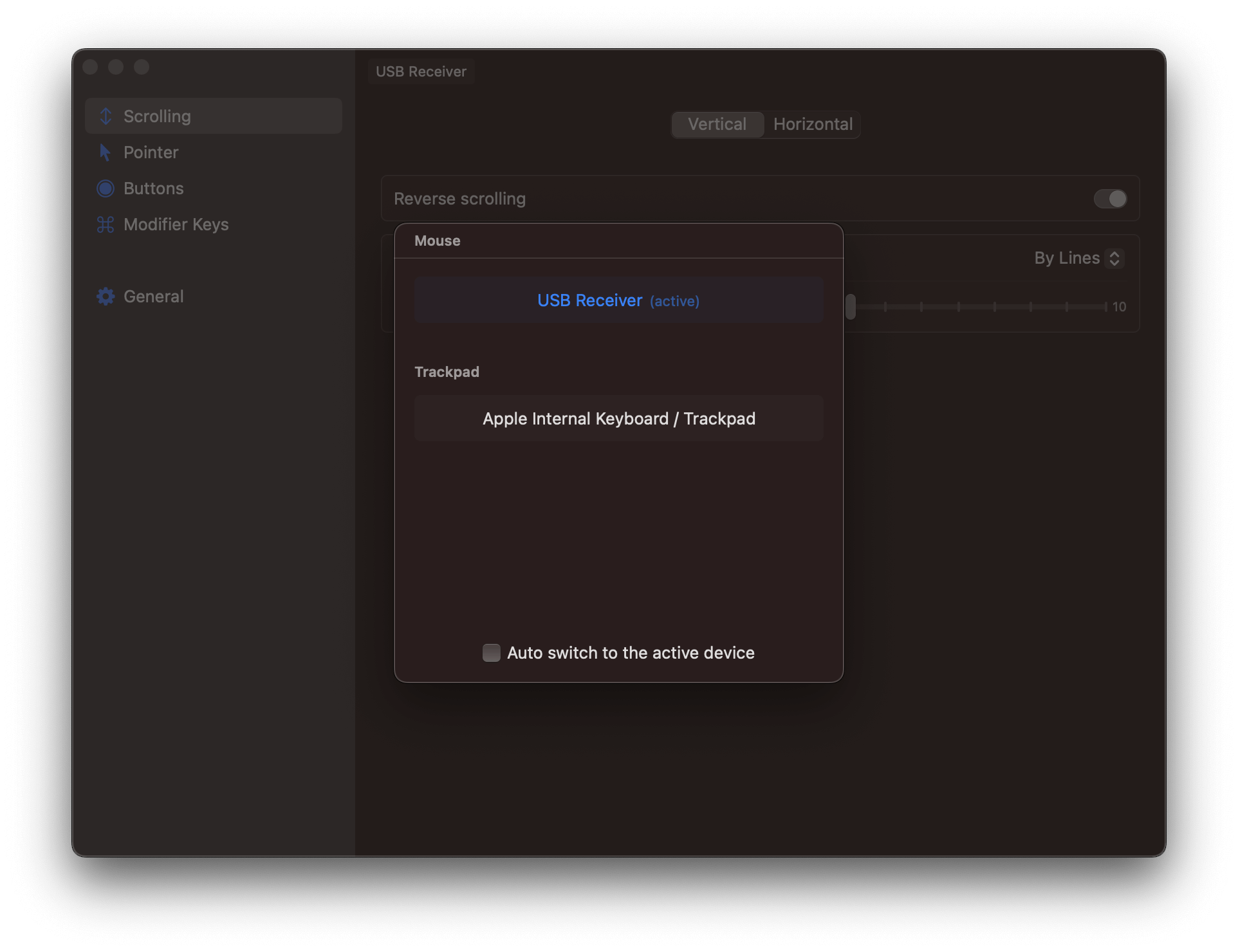 Keep natural scrolling on your trackpad, reverse it on your mouse, and tune every direction until it feels effortless.